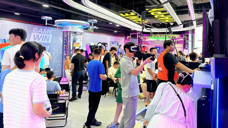 其中,二樓打造的“動(dòng)感競(jìng)技場(chǎng)”,可讓消費(fèi)者體驗(yàn)保齡球精準(zhǔn)碰撞的樂(lè)趣,在“槍王對(duì)決”和“實(shí)彈射擊”中感受腎上腺素飆升,挑戰(zhàn)“滑索”的速度與“射箭”的專(zhuān)注,暢玩Switch2/PS5主機(jī)游戲,或在“炫動(dòng)單車(chē)”“金剛戰(zhàn)士”“巔峰狙擊”中釋放活力,更可在“落日休憩區(qū)”憑欄觀(guān)海,動(dòng)靜皆宜;三樓打造了“科技社交匯”,讓消費(fèi)者步入VR館即可開(kāi)啟奇幻冒險(xiǎn),通過(guò)“宇宙一號(hào)”“傘途”“雙人360”“樂(lè)享滑雪”等7大尖端設(shè)備穿梭虛實(shí)之境。同時(shí),“聲控派對(duì)”“開(kāi)放式舞臺(tái)”點(diǎn)燃社交熱情,桌游、麻將、碰碰車(chē)、臺(tái)球、飛鏢、模擬網(wǎng)球、“悅動(dòng)格子”“360°單車(chē)”等豐富選擇滿(mǎn)足不同興趣群體,更有私密“轟趴房”和舒適“太空艙”提供專(zhuān)屬聚會(huì)與休憩空間。